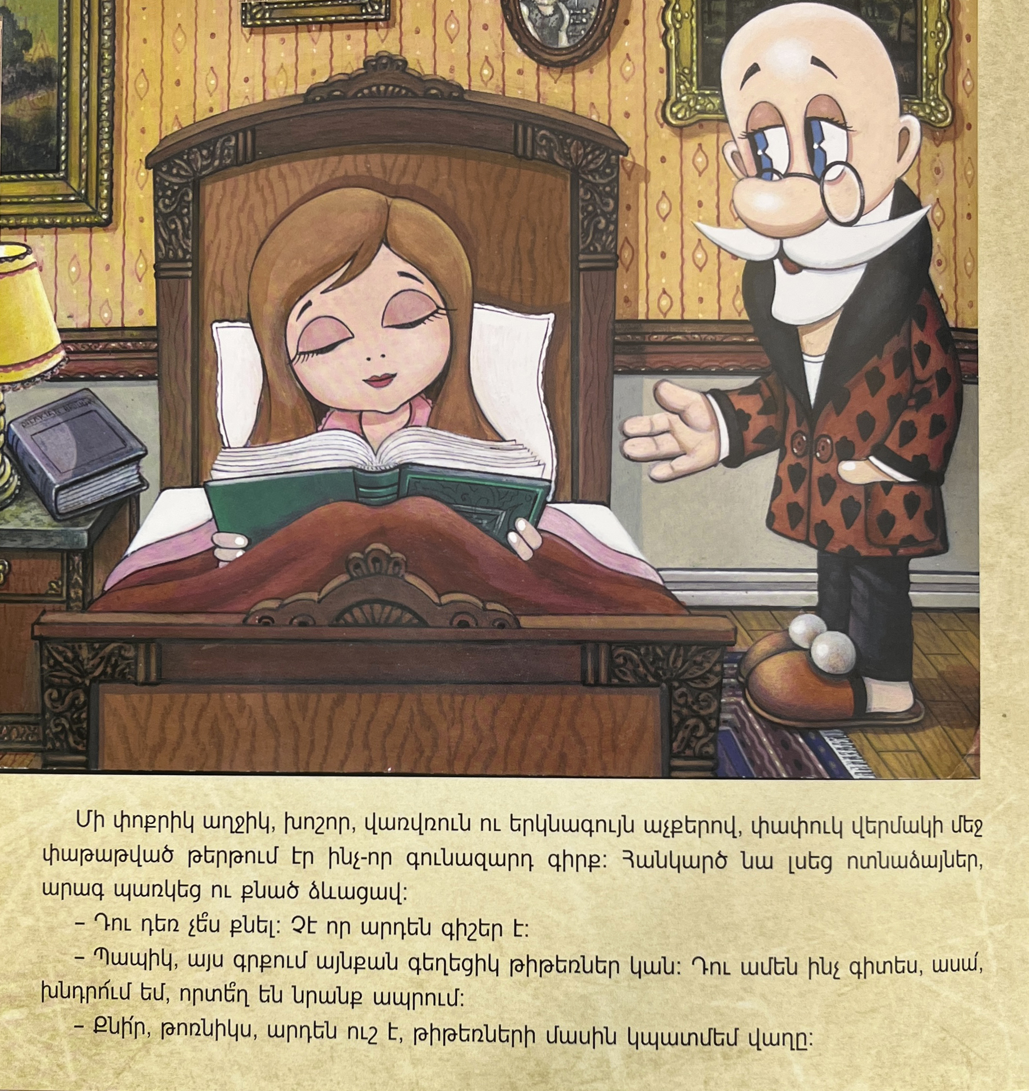 «Գտնված երազ» մուլտֆիլմի հիման վրա ստեղծված այս գիրքը վերստեղծում է սիրված հայկական հեքիաթի կախարդական մթնոլորտը: Փոքրիկ աղջիկը ճանապարհ է ընկնում՝ գտնելու պապիկի կորած երազը, և այդ որոնումները նրան տանում են մի կախարդական աշխարհ։ Այնտեղ նա հանդիպում է մի առեղծվածային ծերունու, որը ողջ կյանքում երբեք գիշեր չի տեսել։