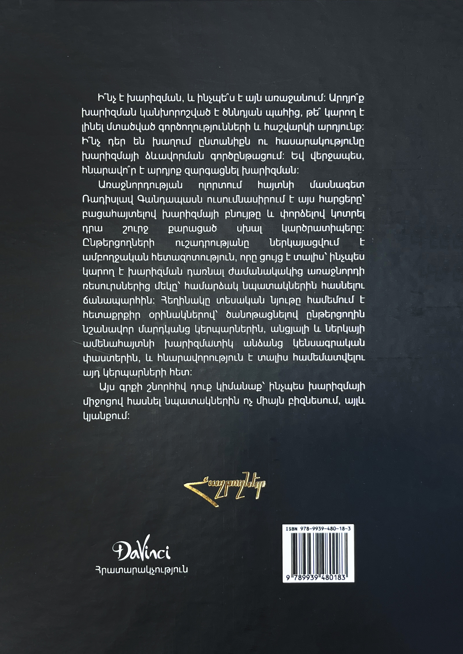 Ի՞նչ է խարիզման և ինչպե՞ս է այն ձևավորվում: Արդյո՞ք խարիզման կանխորոշված է ծննդյան պահից, թե՞ այն կարող է լինել մտածված գործողությունների և հաշվարկի արդյունք: Ինչպիսի՞ դեր ունեն ընտանիքը և հասարակությունը խարիզմայի ձևավորման մեջ: Եվ վերջապես, հնարավո՞ր է արդյոք խարիզման զարգացնել: Հեղինակը տալիս է իր պատասխաններն այս հետաքրքիր անձնական որակի և...