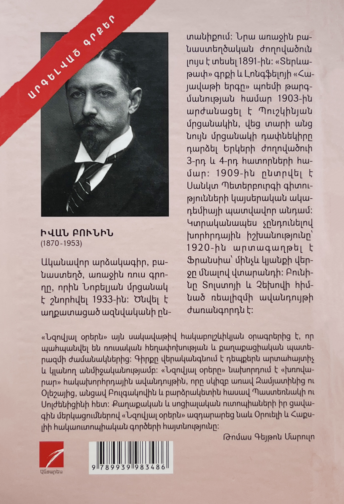 Փիլիսոփայական-հրապարակախոսական շնչով գրված այս գիրքը, որտեղ վավերականությունն ու գեղարվեստականությունն ի մի են եկել, հենված է մեծ գրողի օրագրային նշումների վրա, որոնք արվել են 1918-20 թթ․ Մոսկվայում և Օդեսայում: Ռուսական հեղափոխությունը Բունինն ընկալում էր որպես ազգային աղետ և մռայլ վհատությամբ է նկարագրել երկրի համար ճակատագրական շրջանը: Առաջին անգամ գրքից հատվածներ են...
