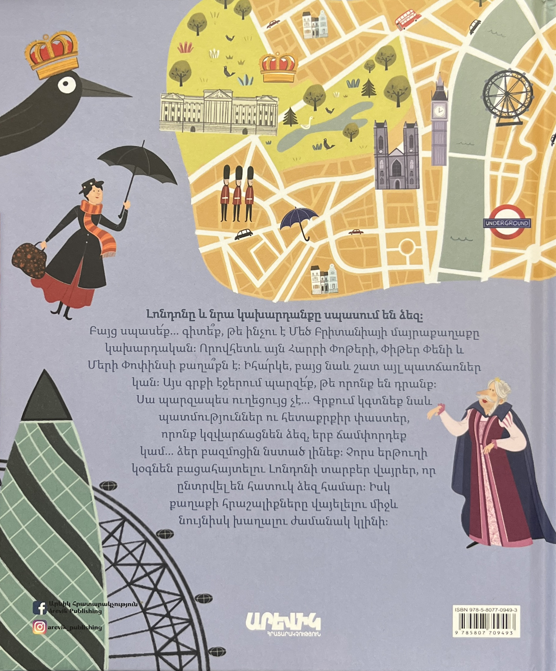 Լոնդոնը և նրա կախարդանքը սպասում են ձեզ: Բայց սպասե՛ք... գիտե՞ք, թե ինչու է Մեծ Բրիտանիայի մայրաքաղաքը կախարդական: Որովհետև այն Հարրի Փոթերի, Փիթեր Փենի և Մերի Փոփինսի քաղա՞քն է: Իհարկե՛, բայց նաև շատ այլ պատճառներ կան: Այս գրքի էջերում պարզե՛ք, թե որոնք են դրանք: Սա պարզապես ուղեցույց չէ...գրքում կգտեք նաև պատմություններ ու հետաքրքիր փաստեր, որոնք կզվարճացնեն ձեզ, երբ ճամփորդեք կամ... ձեր բազմոցին նստած լինեք: Չորս երթուղի կօգնեն բացահայտելու Լոնդոնի տարբեր վայրեր, որ ընտրվել են հատուկ ձեզ համար: Իսկ քաղաքի հրաշալիքները վայելելու միջև նույնիսկ խաղալու ժամանակ կլինի: