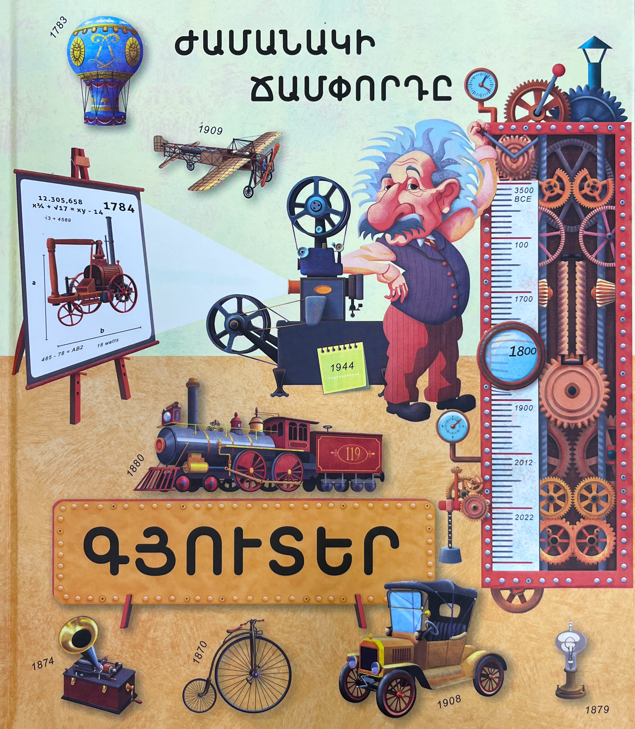 Այս գրքի էջերում դու կկարողանաս ճամփորդել ասես ժամանակի մեքենայով: Անցնելով դարից դար՝ դու կտեսնես մարդկության մեծագույն բացահայտումները: Այս գրքում ներկայացված է մարդկային մտքի էվոլուցիան՝ անիվի ու գրատպության գյուտից մինչև մեր օրերի մեքենաներն ու ինքնաթիռները: Ժամանակակից ու գունագեղ պատկերազարդումներն ուշագրավ մեկնաբանությունների հետ միասին կհետաքրքրեն ցանկացած փոքրիկ ընթերցողի: