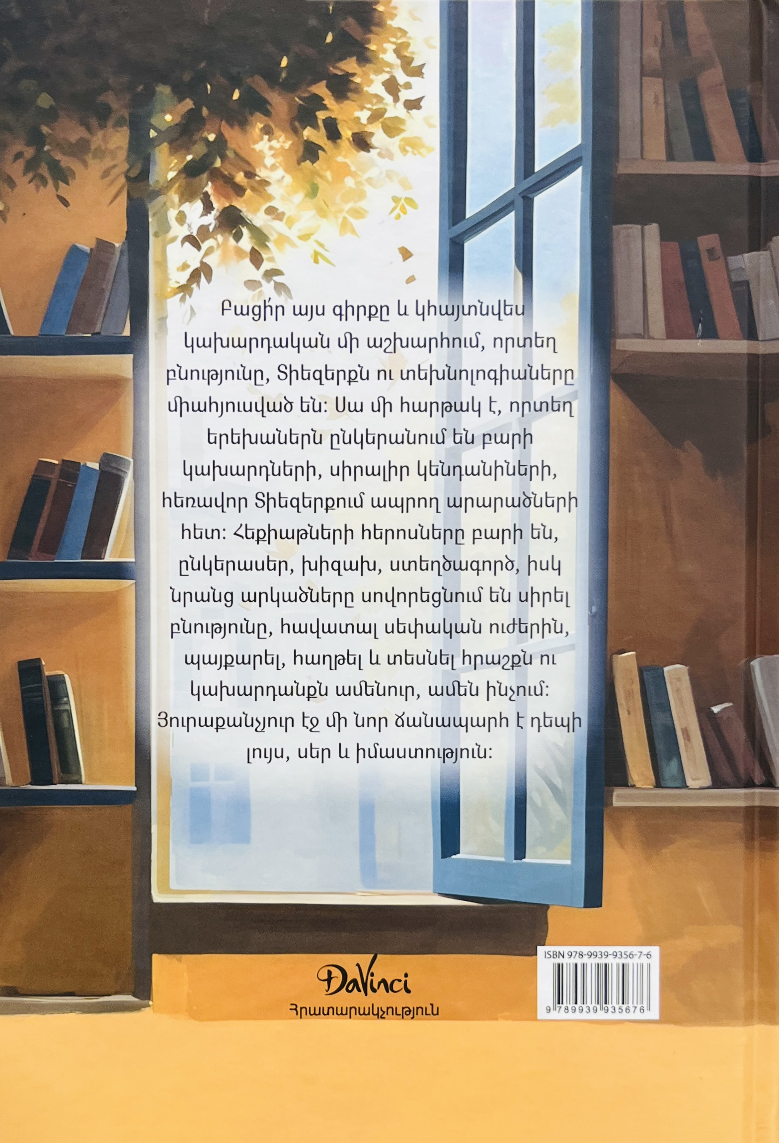 Բացելով այս գիրքը կհայտնվես կախարդական մի աշխարհում, որտեղ բնությունը, Տիեզերքն ու տեխնոլոգիաները միահյուսված են։ Սա մի հարթակ է, որտեղ երեխաները ընկերանում են բարի կախարդների, սիրալիր կենդանիների, հեռավոր Տիեզերքում ապրող արարածների հետ։ Հեքիաթների հերոսները բարի են, ընկերասեր, խիզախ, ստեղծագործ, իսկ նրանց արկածները սովորեցնում են սիրել բնությունը, հավատալ սեփական ուժերին, պայքարել, հաղթել...
