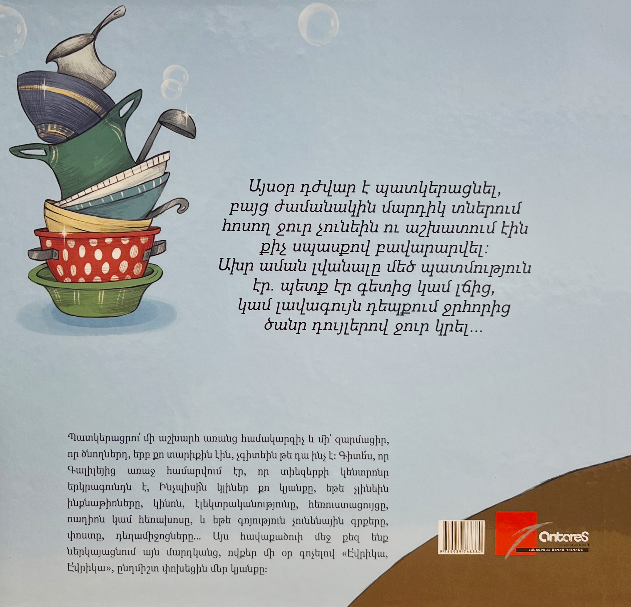 Այսօր դժվար է պատկերացնել, բայց ժամանակին մարդիկ տներում հոսող ջուր չունէին ու աշխատում էին քիչ սպասքով բավարարվել: Ախր աման լվանալը մեծ պատմություն էր. պետք էր գետից կամ լճից, կամ լավագույն դեպքում ջրհորից ծանր դույլերով ջուր կրել...