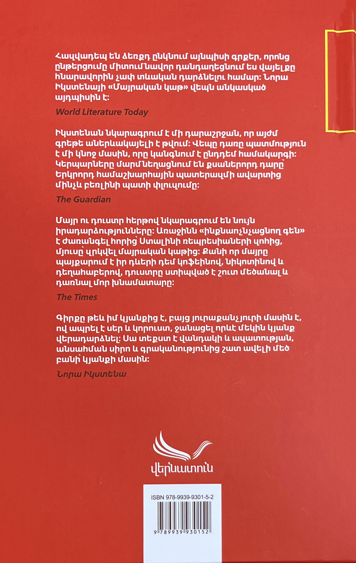 Նորա Իկստենայի «Մայրական կաթ» վեպը նույն ընտանիքի երեք սերնդի կանանց պատմություն է: Հեղինակը հանրամատչելիորեն պատկերում է իր մանկության և երիտասարդության տարիների խորհրդային Լատվիայի սոցիալական միջավայրը, բարոյականության վակուումը, որը տարօրինակորեն ուղղորդվում էր և ներսից կոտրելով մարդկանց՝ վերածում կենդանի դիակների: Վեպի ամբողջ տեքստը ապրելու անհնարինության վավերագրություն է՝ ներծծված հրաժարումով ամուսնուց ու հորից,...