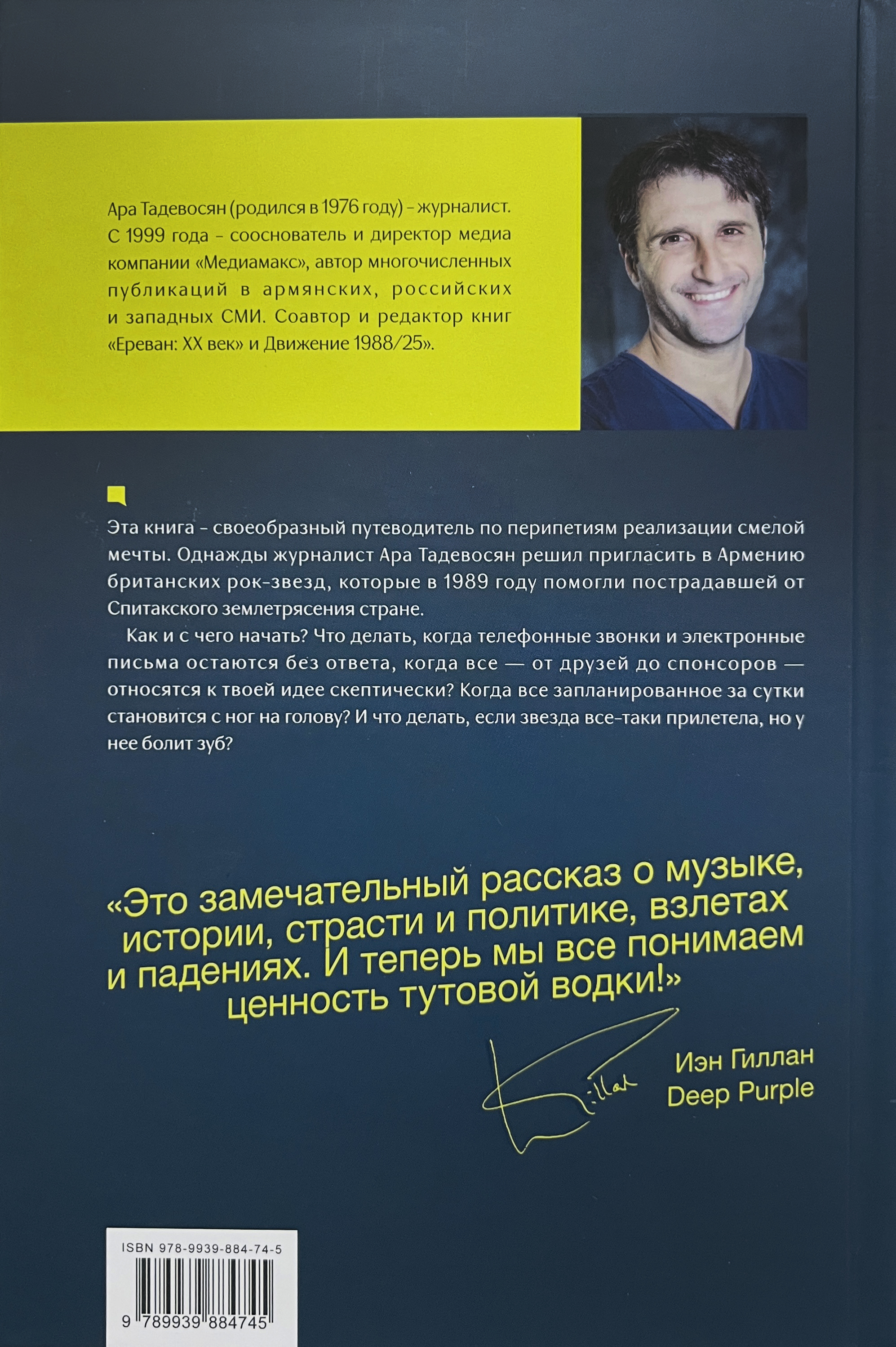 Эта книга о том, что «невозможное возможно». А именно о том, как журналист Ара Тадевосян решил однажды пригласить в Армению британских рок-звезд, которые в 1989 году помогли пострадавшей от Спитакского землетрясения стране. Эта книга - своеобразный путеводитель по перипетиям реализации смелой мечты. Как и с чего начать? Что делать, когда телефонные звонки и электронные письма остаются без ответа, когда все — от друзей до спонсоров — относятся к твоей идее скептически? Когда все запланированное за сутки становится с ног на голову? И что делать, если звезда все-таки прилетела, но у нее болит зуб? Ара Тадевосян искренне и подробно описывает закулисье самoй, пожалуй, звездной инициативы в истории независимой Армении. Этот рассказ может заинтересовать не только любителей рока, но всех тех, у кого есть большие мечты, воля и энергия для их воплощения в жизнь.