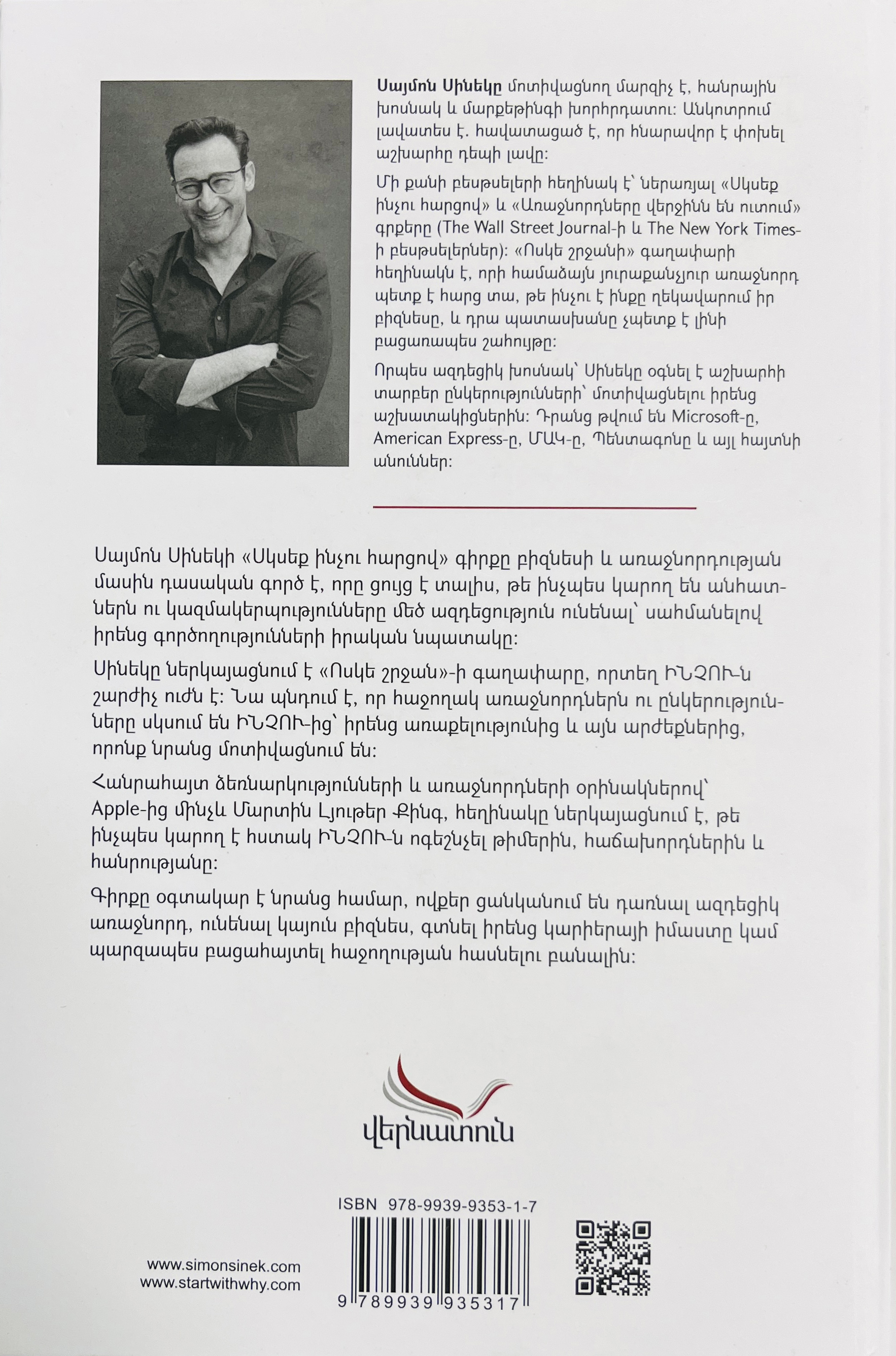 Սայմոն Սինեկի «Սկսեք ինչու հարցով» գիրքը բիզնեսի և առաջնորդության մասին դասական գործ է, որը ցույց է տալիս, թե ինչպես կարող են անհատներն ու կազմակերպությունները մեծ ազդեցություն ունենալ՝ սահմանելով իրենց գործողությունների իրական նպատակը: Սինեկը ներկայացնում է «Ոսկե շրջան»–ի գաղափարը, որտեղ ԻՆՉՈՒ–ն շարժիչ ուժն է: Նա պնդում է, որ հաջողակ առաջնորդներն ու ընկերությունները սկսում են ԻՆՉՈՒ–ից՝ իրենց առաքելությունից և այն արժեքներից, որոնք նրանց մոտիվացնում են: Հանրահայտ ձեռնարկությունների և առաջնորդների օրինակներով՝ Apple-ից մինչև Մարտին Լյութեր Քինգ, հեղինակը ներկայացնում է, թե ինչպես կարող է հստակ ԻՆՉՈՒ–ն ոգեշնչել թիմերին, հաճախորդներին և հանրությանը: Գիրքը օգտակար է նրանց համար, ովքեր ցանկանում են դառնալ ազդեցիկ առաջնորդ, ունենալ կայուն բիզնես, գտնել իրենց կարիերայի իմաստը կամ պարզապես բացահայտել հաջողության հասնելու բանալին: