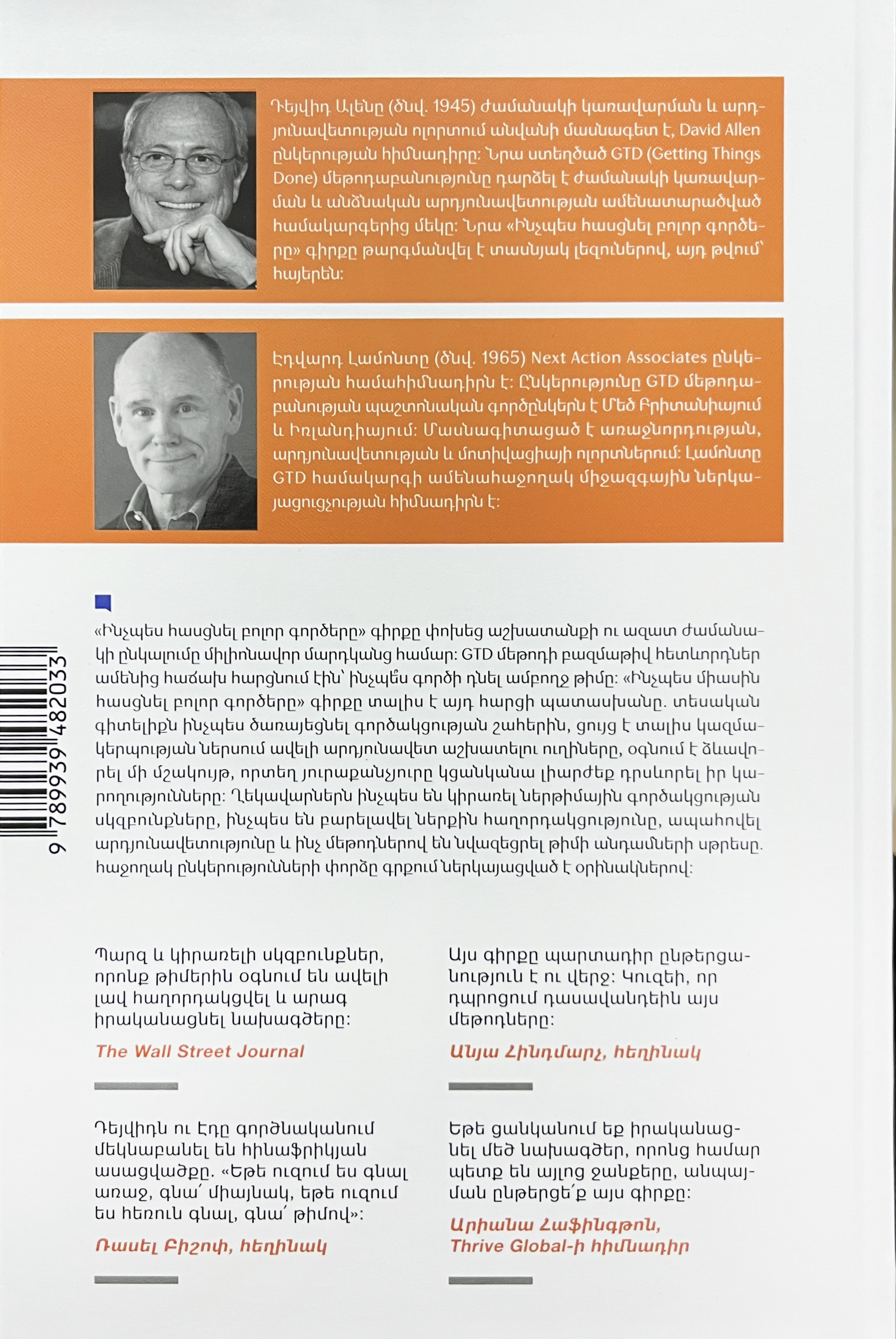 2001-ին լույս տեսած «Ինչպես հասցնել բոլոր գործերը» գիրքը հեղափոխական աշխատություն էր։ Դեյվիդ Ալենի սկզբունքները փոխեցին աշխատանքի ու ազատ ժամանակի ընկալումը և վերափոխեցին միլիոնավոր մարդկանց, ցույց տվեցին, թե ինչպես է հնարավոր բարձր արդյունավետության հասնել։ 20 տարի անց պարզ դարձավ, որ այս սկզբունքները պետք են նաև թիմային մակարդակում։ GTD մեթոդի բազմաթիվ հետևորդներ...
