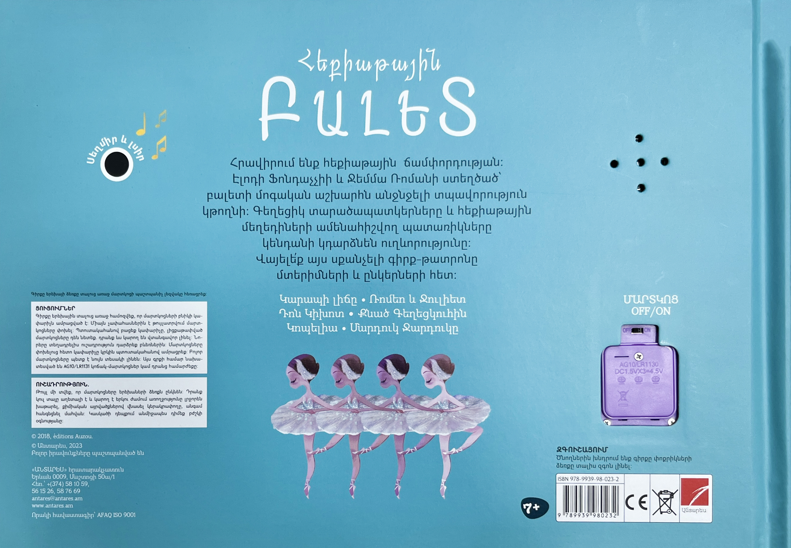 Հրավիրում ենք հեքիաթային ճամփորդության: Էլոդի Ֆոնդաչչիի և Ջեմմա Ռոմանի ստեղծած՝ բալետի մոգական աշխարհն անջնջելի տպավորություն կթողնի: Գեղեցիկ տարածապատկերները և հեքիաթային մեղեդիների ամենահիշվող պատառիկները կենդանի կդարձնեն ուղևորությունը: Վայելեք այս սքանչելի գիրք-թատրոնը մտերիմների և ընկերների հետ: