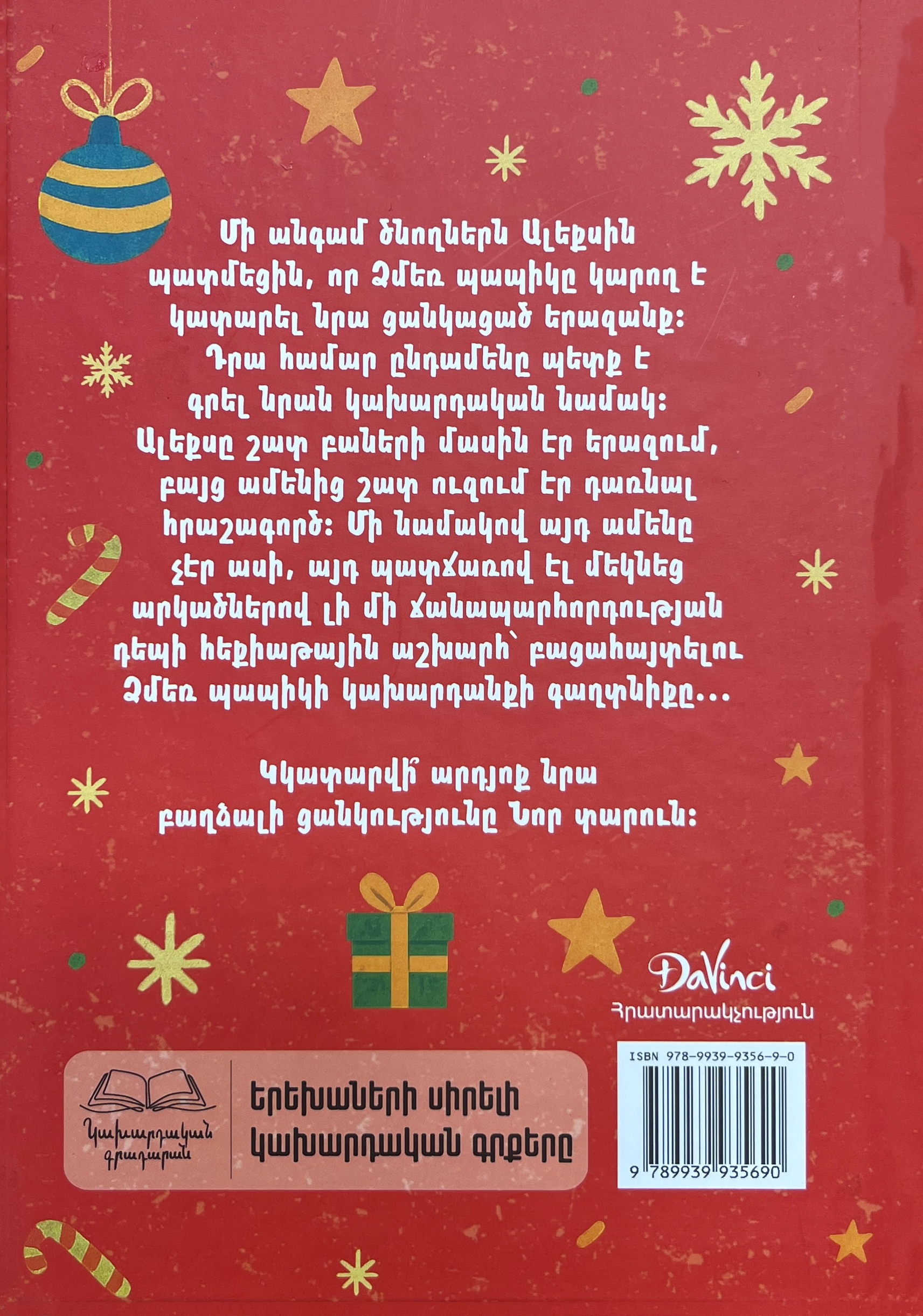 Մի անգամ ծնողներն Ալեքսին պատմեցին, որ Ձմեռ պապիկը կարող է կատարել նրա ցանկացած երազանք: Դրա համար ընդամենը պետք է գրել նրան կախարդական նամակ: Ալեքսը շատ բաների մասին էր երազում, բայց ամենից շատ ուզում էր դառնալ հրաշագործ: Մի նամակով այդ ամենը չէր ասի, այդ պատճառով էլ մեկենց արկածներով լի մի ճանապարհորդության դեպի հեքիաթային աշխարհ՝ բացահայտելու Ձմեռ պապիկի կախարդանքի գաղտնիքը... Կկատարվի՞ արդյոք նրա բաղձալի ցանկությունները նոր տարուն: