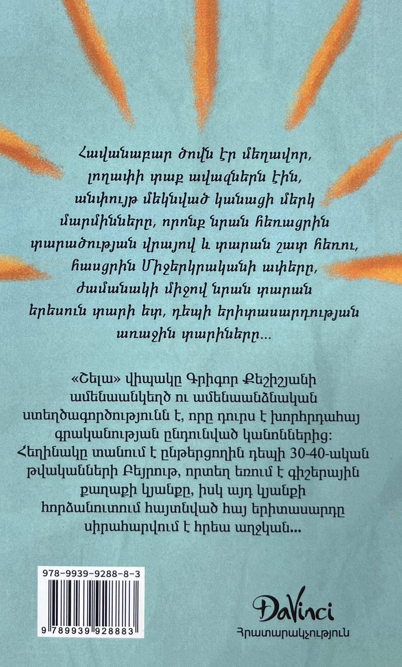«Շելա» վիպակը Գրիգոր Քեշիշյանի ամենաանկեղծ ու ամենաանձնական ստեղծագործությունն է, որը դուրս է խորհրդահայ գրականության ընդունված կանոններից: Հեղինակը ընթերցողին տանում է դեպի 30-40- ական թվականների Բեյրութ, որտեղ եռում է գիշերային քաղաքի կյանքը, իսկ այդ կյանքի հորձանուտում հայտնված հայ երիտասարդը սիրահարվում է հրեա աղջկան...