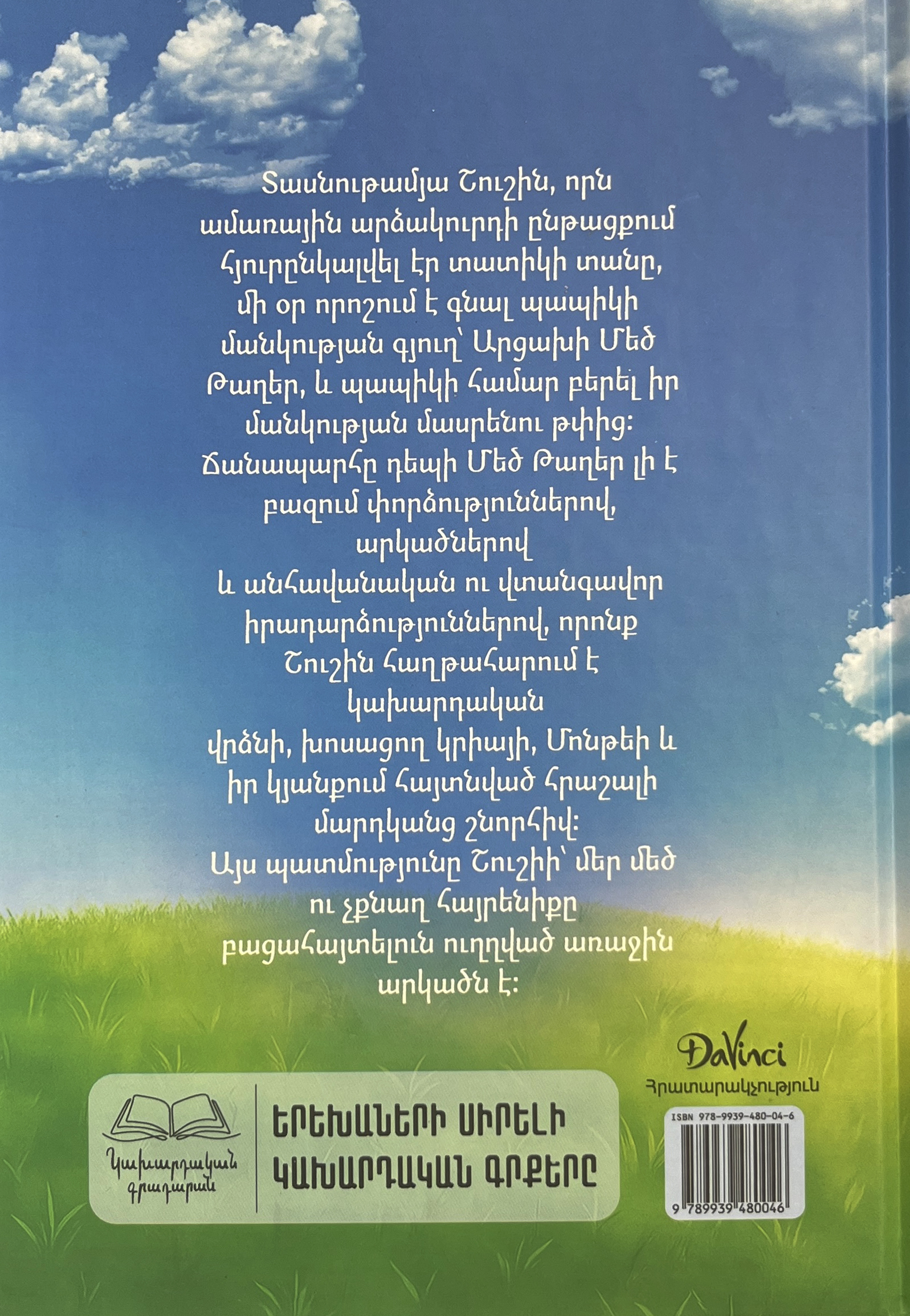 Տասնութամյա Շուշին, որն ամառային արձակուրդի ընթացքում հյուրընկալվել էր տատիկի տանը, մի օր որոշում է գնալ պապիկի մանկության գյուղ՝ Արցախի Մեծ Թաղեր, և պապիկի համար բերել իր մանկության մասրենու թփից։ Ճանապարհը դեպի Մեծ Թաղեր լի է բազում փորձություններով, արկածներով և անհավանական ու վտանգավոր իրադարձություններով, որոնք Շուշին հաղթահարում է կախարդական վրձնի, խոսացող կրիայի, Մոնթեի և իր կյանքում հայտնված հրաշալի մարդկանց շնորհիվ։ Այս պատմությունը Շուշիի՝ մեր մեծ ու չքնաղ հայրենիքը բացահայտելուն ուղղված առաջին արկածն է։