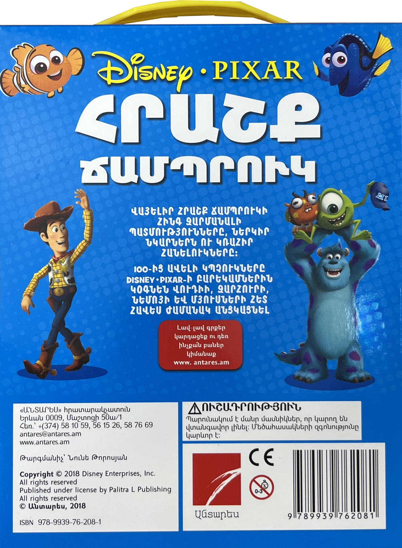 Վայելիր «Հրաշք ճամպրուկ»-ի հինգ զարմանալի պատմությունները, ներկիր նկարներն ու կռահիր հանելուկները: 100-ից ավելի կպչուկները DISNEY PIXAR-ի բարեկամներին կօգնեն Վուդիի, Զարհուրի, Նեմոյի և մյուսների հետ հավես ժամանակ անցկացնել: