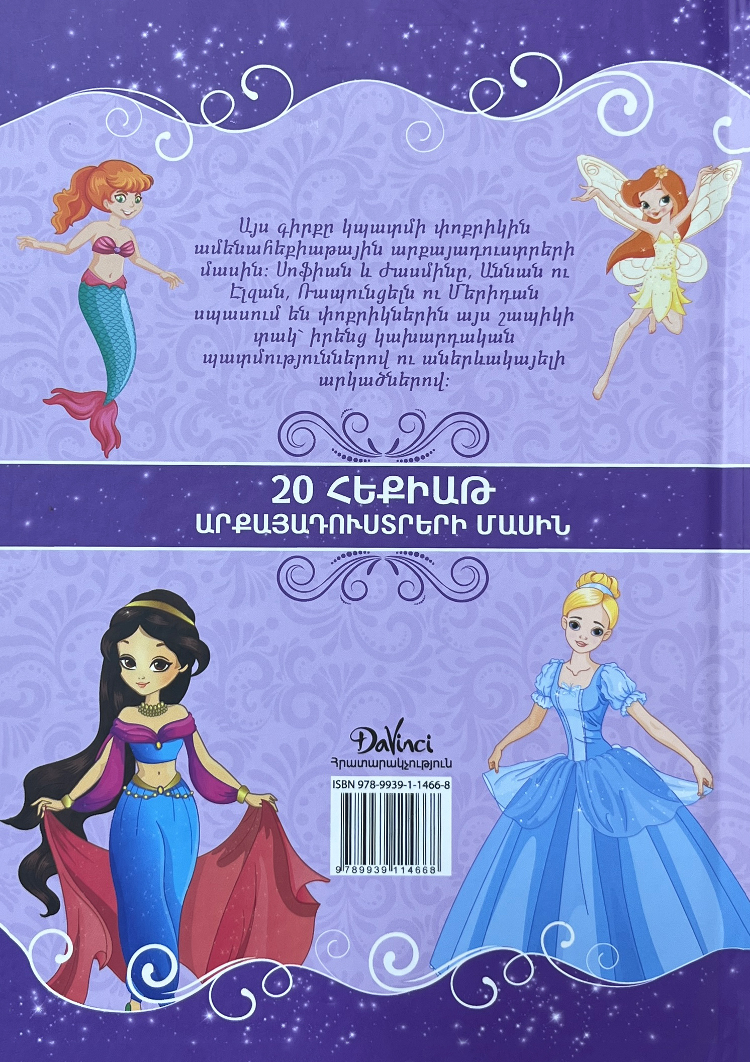 Այս գիրքը կպատմի փոքրիկին ամենահեքիաթային արքայադուստրերի մասին։ Սոֆյան և Ժասմինը, Աննան ու Էլզան, Ռապունցելն ու Մերիդան սպասում են փոքրիկներին այս շապիկի տակ՝ իրենց կախարդական պատմություններով ու աներևակայելի արկածներով։