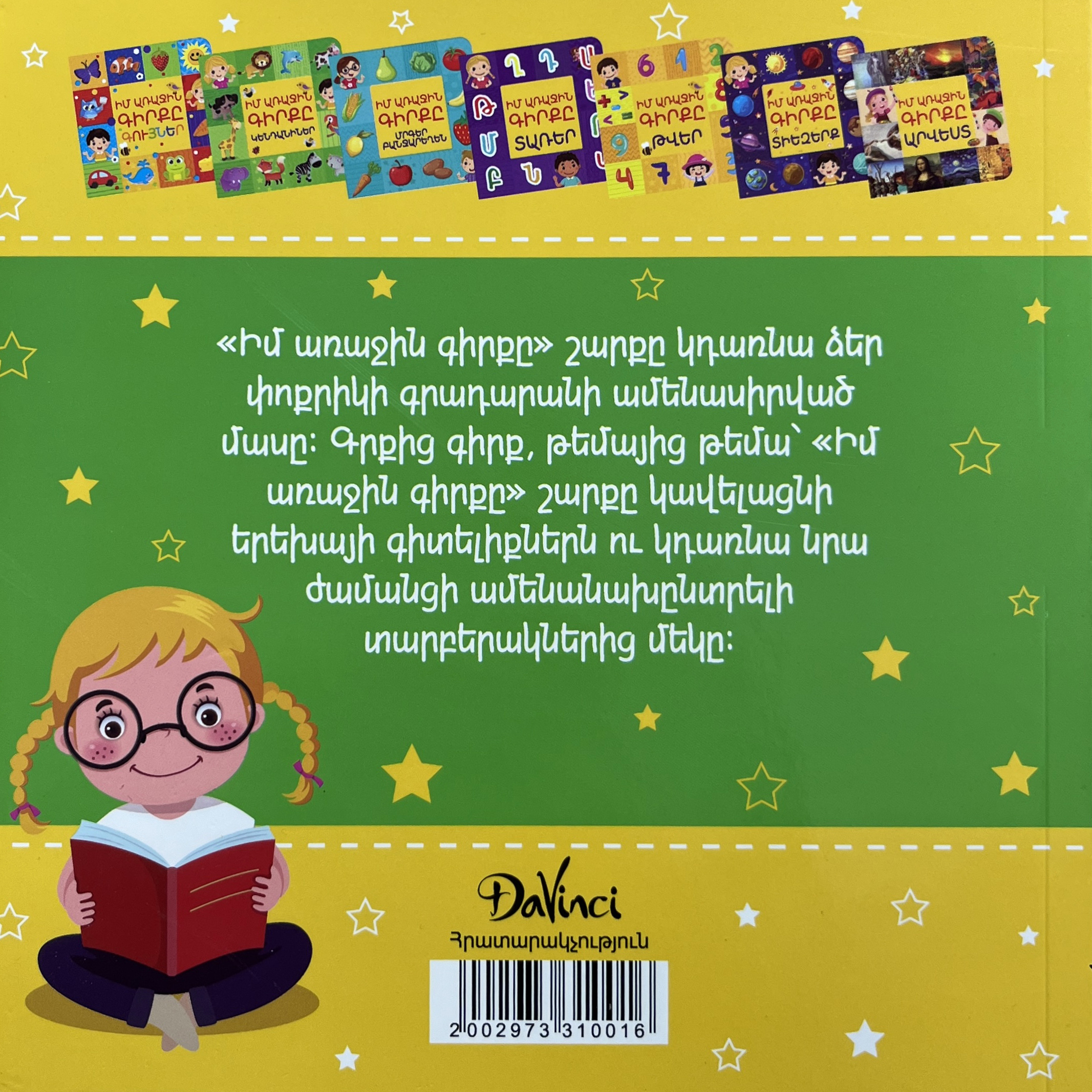 «Իմ առաջին գիրքը» շարքը կդառնա ձեր փոքրիկի գրադարանի ամենասիրված մասը։ Գրքից գիրք, թեմայից թեմա՝ «Իմ առաջին գիրքը» շարքը կավելացնի երեխայի գիտելիքներն ու կդառնա նրա ժամանցի ամենանախընտրելի տարբերակներից մեկը։