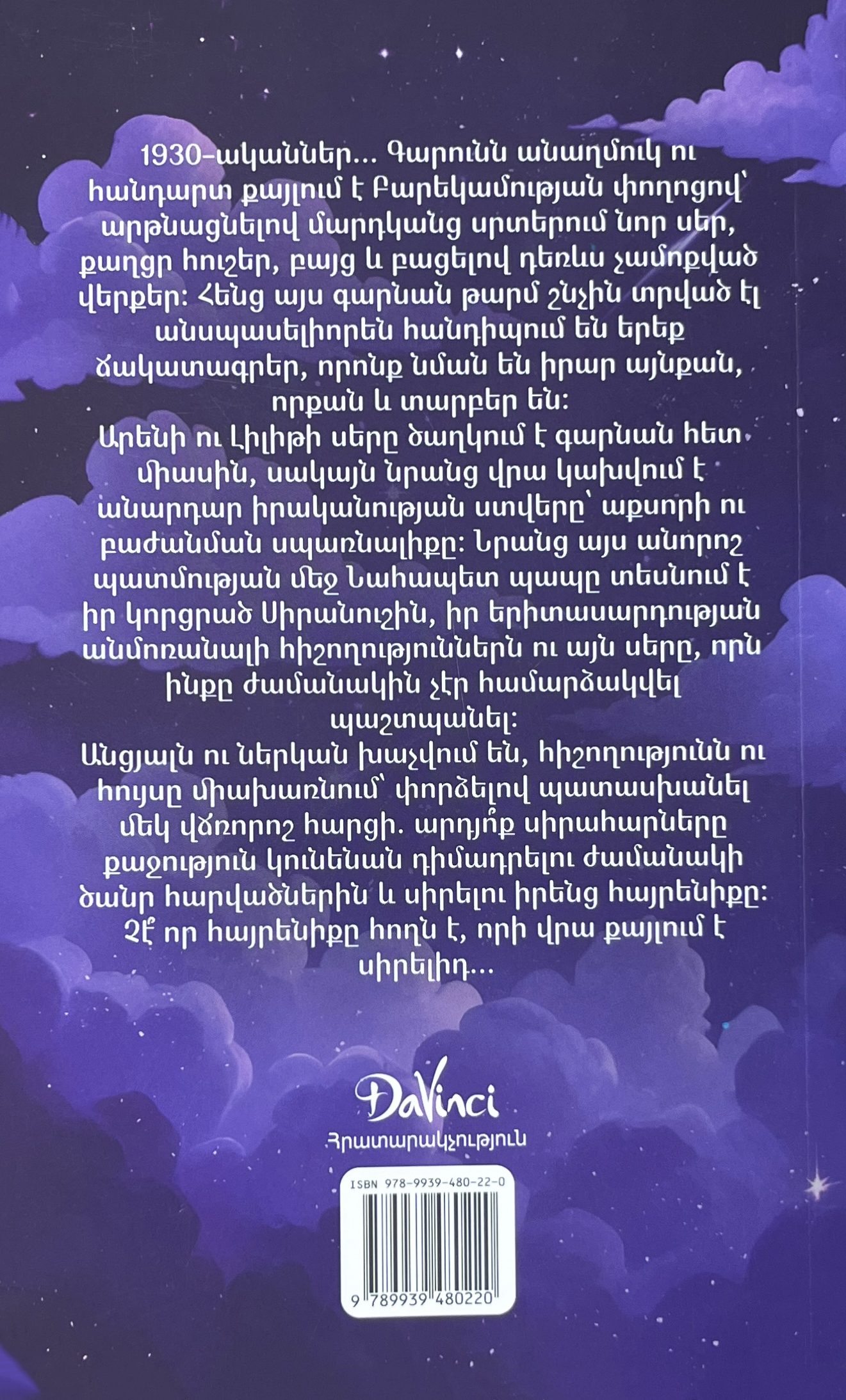 1930-ականներ...Գարունն անաղմուկ ու հանդարտ քայլում է Բարեկամության փողոցով՝ արթնացնելով մարդկանց սրտերում նոր սեր, քաղցր հուշեր, բայց և բացելով դեռևս չամոքված վերքեր։ Հենց այս գարնան թարմ շնչին տրված էլ անսպասելիորեն հանդիպում են երեք ճակատագրեր, որոնք նման են իրար այնքան, որքան և տարբեր են։ Արենի ու Լիլիթի սերը ծաղկում է գարնան հետ...